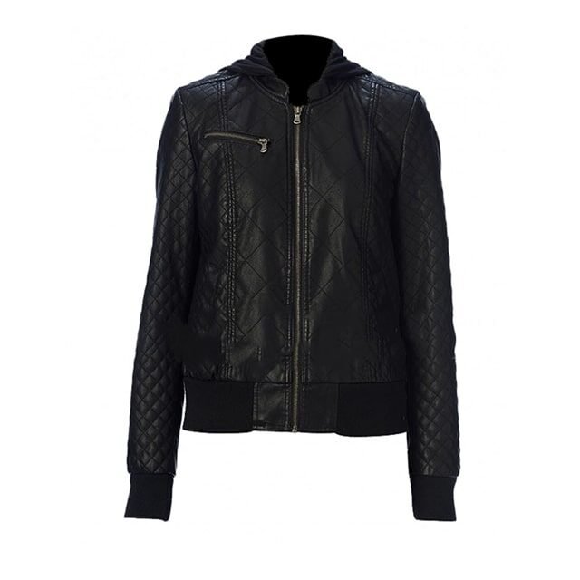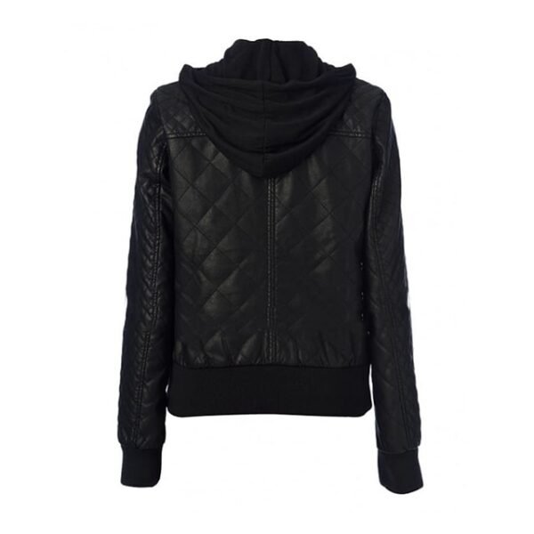 Schwarze gesteppte Bomberjacke aus Leder mit Kapuze Jacke