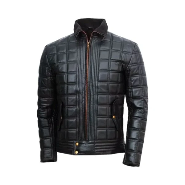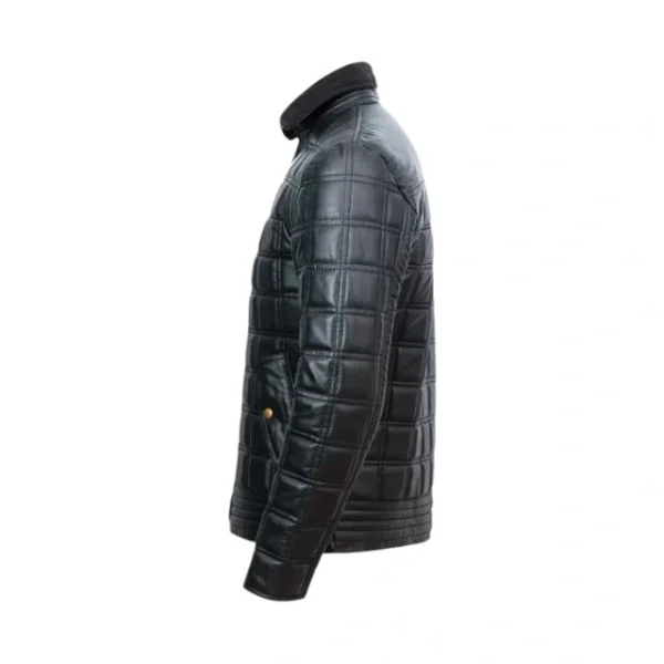Schwarzer Herren-Stepppullover aus Schafsleder Jacke