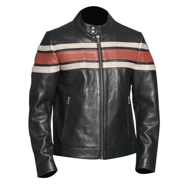 Fett Weiße/cremefarbene Streifen auf Brust und Ärmeln verleihen dieser Jacke einen dynamischen, klassischen Café-Racer-Look und machen sie zu etwas Besonderem.