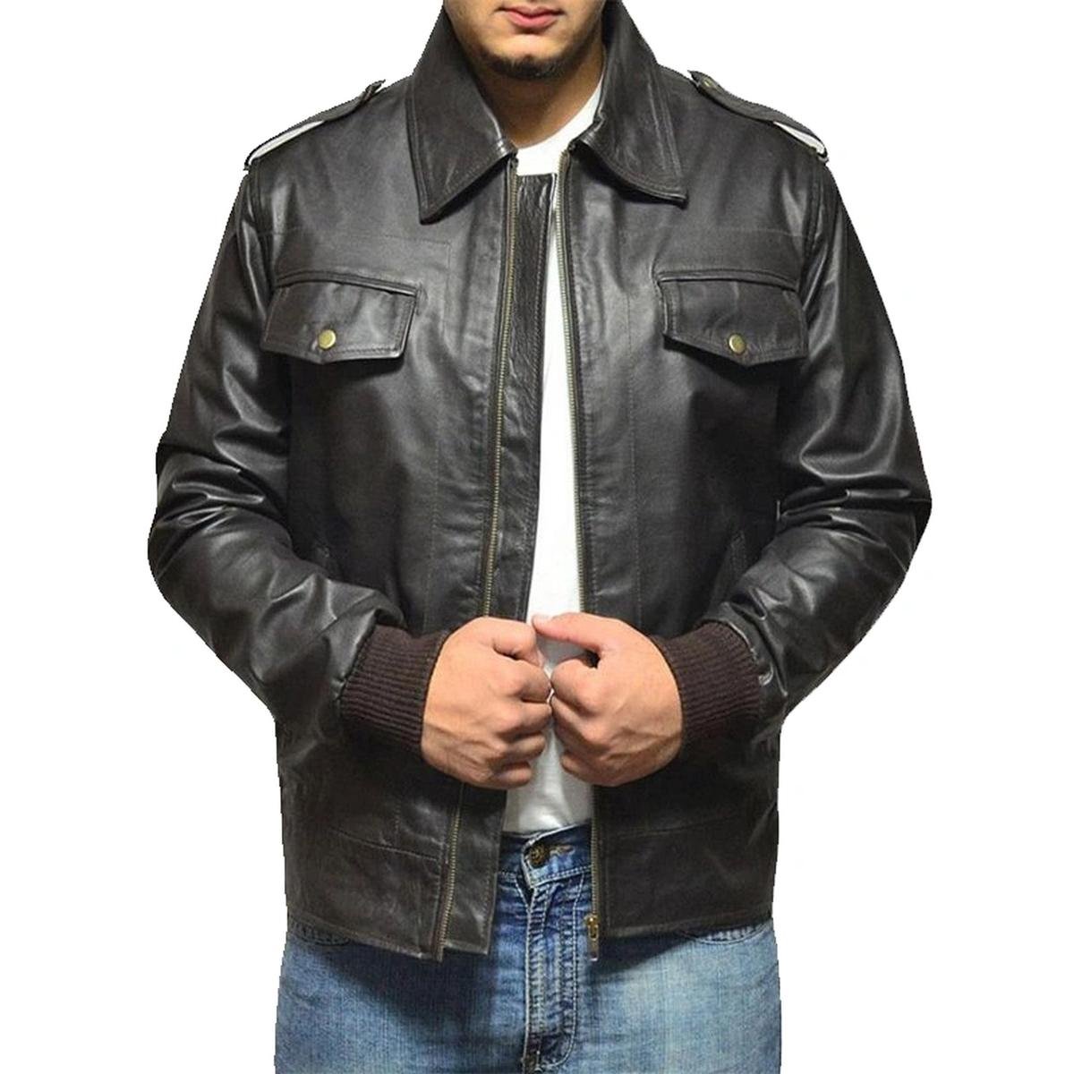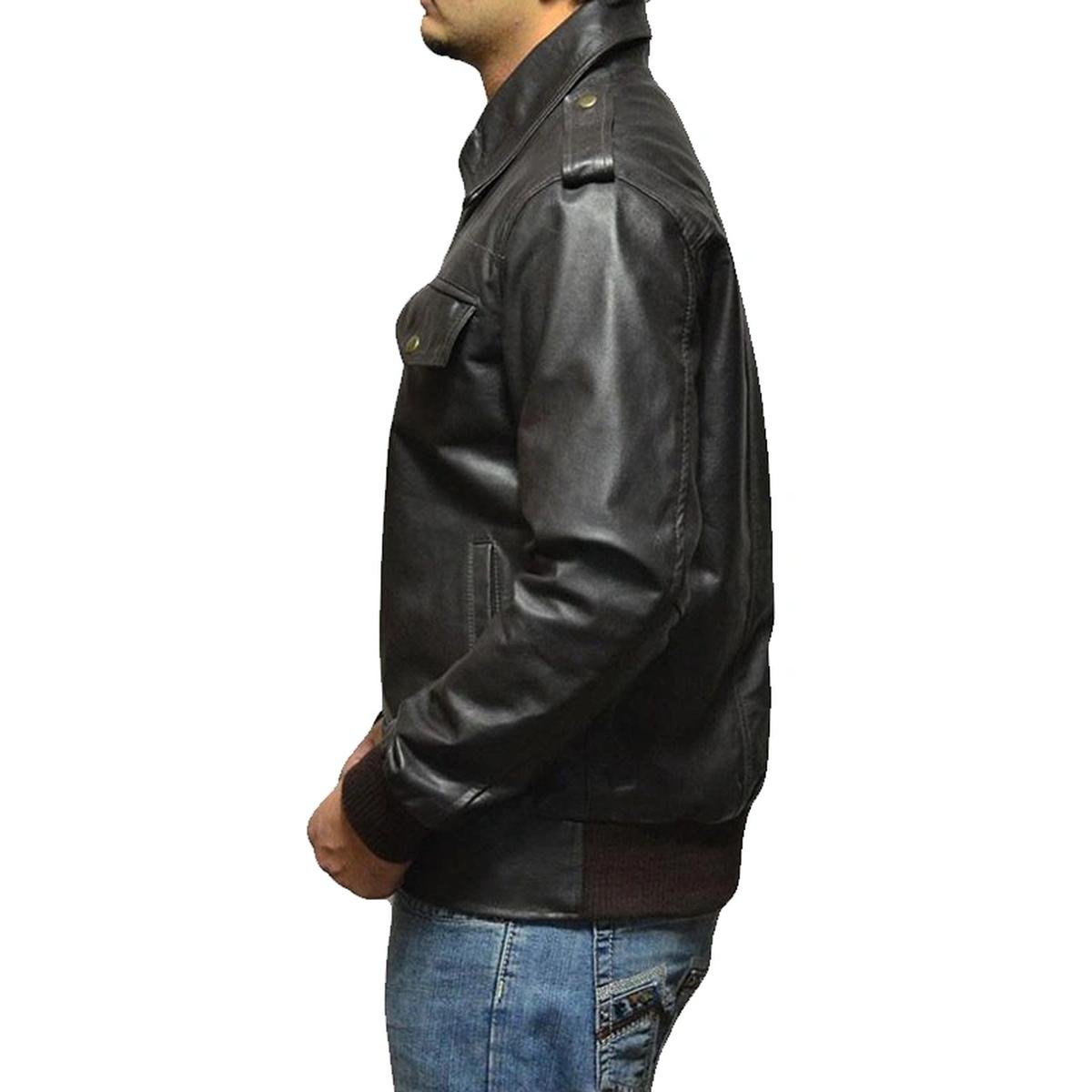 Herren Schwarze Klassische Bomberjacke aus echtem Leder Jacke