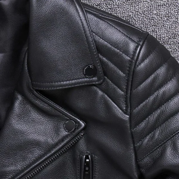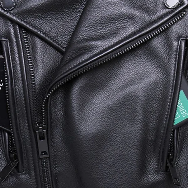 Erleben Sie die perfekte Kombination aus Langlebigkeit und unverwechselbarem Stil mit unserer schwarzen Slim-Fit-Motorradlederjacke für Herren. Diese Jacke ist aus hochwertigem Vollnarben-Schafsleder gefertigt und verspricht sowohl außergewöhnliche Strapazierfähigkeit als auch ein bemerkenswert weiches, geschmeidiges Tragegefühl auf der Haut. Das taillierte Slim-Fit-Design betont nicht nur Ihre Figur, sondern verleiht Ihnen auch ein elegantes, modernes Profil – perfekt für entspannte Fahrten auf der Landstraße oder durch die belebten Straßen der Stadt.