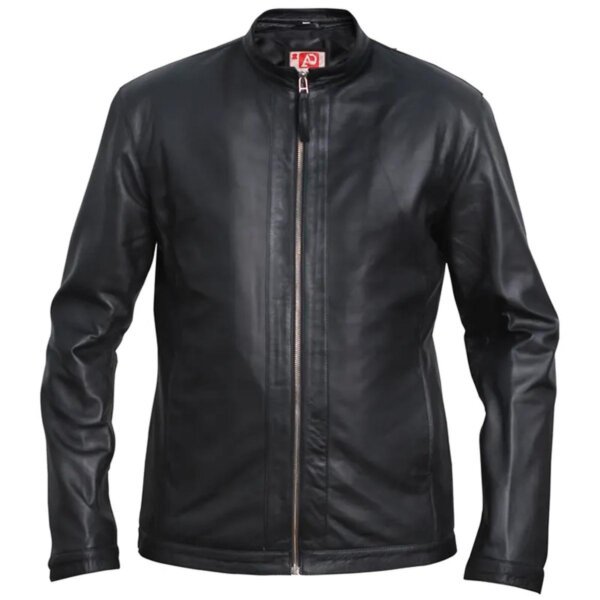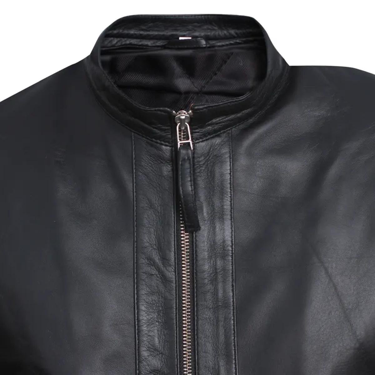 Schwarze Slim-Fit-Biker-Motorradlederjacke für Herren Jacke