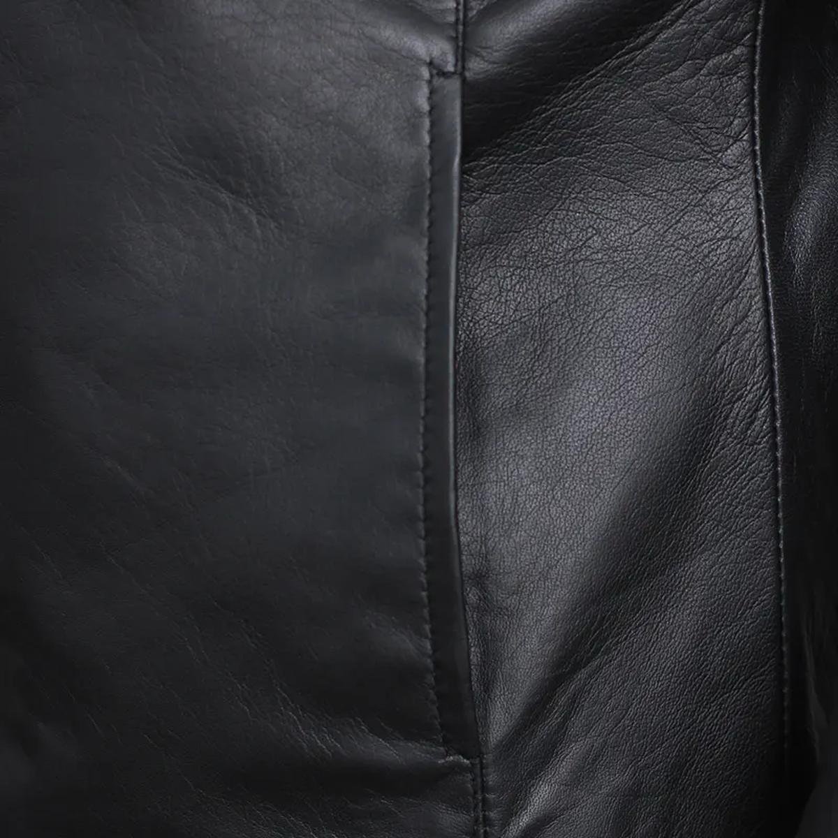 Diese Jacke aus luxuriösem 100 % echtem Lammleder besticht durch ihr geschmeidiges Tragegefühl und ihre edle, tiefschwarze Farbe. Ihre schmale Silhouette schmeichelt der Figur, während das glatte Viskosefutter ganzjährigen Tragekomfort garantiert. Perfekt, um ein starkes Statement zu setzen, egal ob Sie unterwegs sind oder einen großen Auftritt hinlegen.