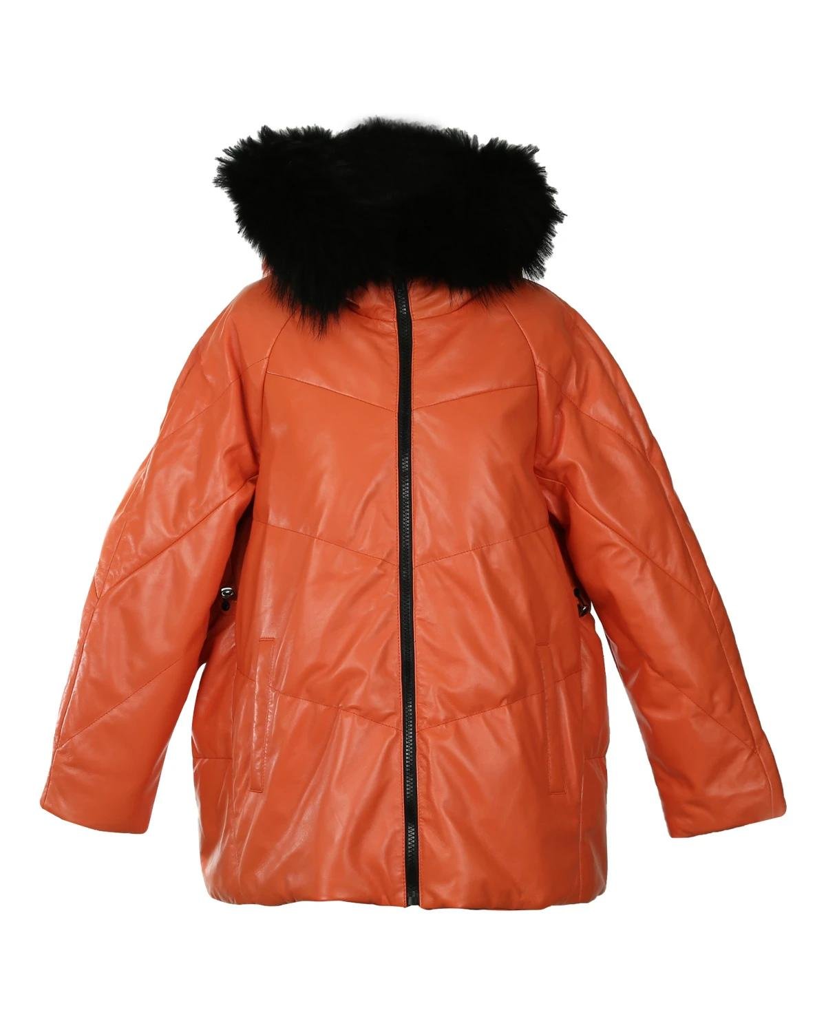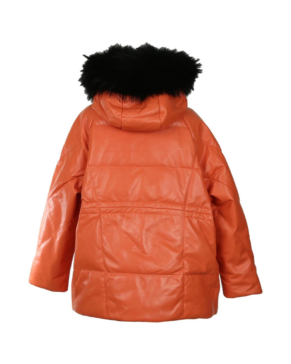 Pufferledermantel mit luxuriösem Pelz Kapuze