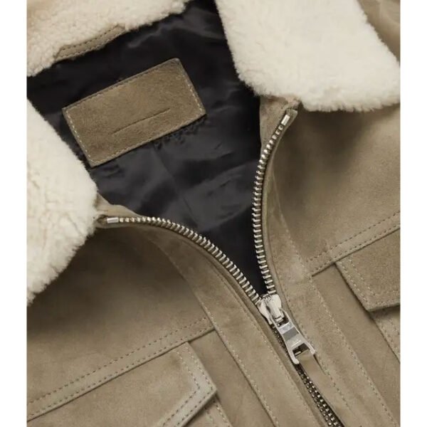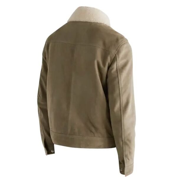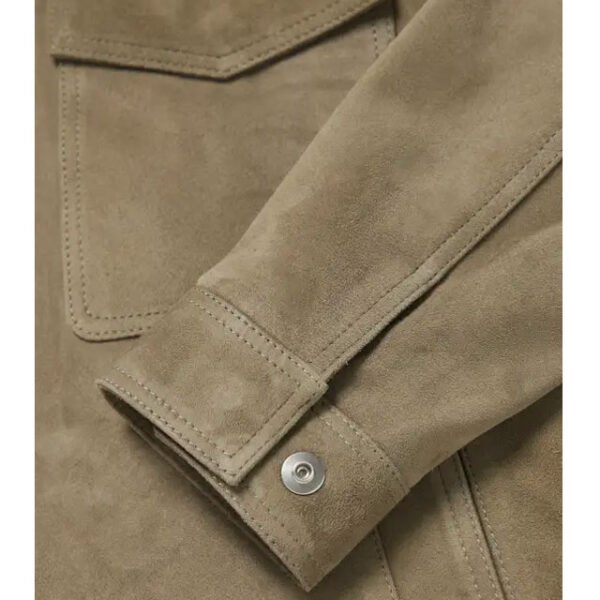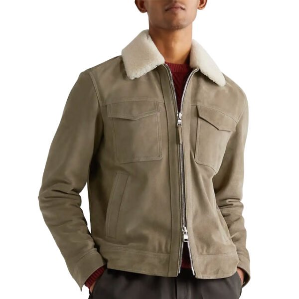 Erleben Sie die unvergleichliche Verbindung von Langlebigkeit und Stil mit unserer **Truckerjacke aus Wildleder mit Shearling-Besatz**. Handgefertigt von erfahrenen Kunsthandwerkern aus 100 % echtem Vollnarben-Schafsleder, verspricht sie ein luxuriöses Tragegefühl und lange Haltbarkeit. Der weiche, cremefarbene Shearling-Besatz an Kragen und Bündchen sorgt für außergewöhnliche Wärme und einen raffinierten Texturkontrast – die perfekte Jacke für die kälteren Jahreszeiten.