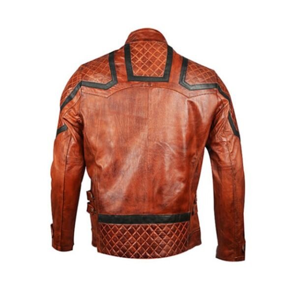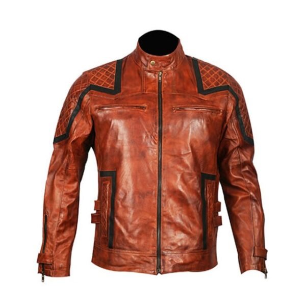 Diese Designer-Bikerjacke aus luxuriösem **100 % reinem Lammleder** mit einem satten Vintage-Braunton bietet unvergleichliche Weichheit und einen raffinierten, leicht abgenutzten Look. Die charakteristische **rautenförmige Steppung** an Schultern, Oberarmen und Seiten des Oberkörpers verleiht dem Kleidungsstück eine besondere Textur und eine hochwertige Optik, sodass Sie sich von der Masse abheben.