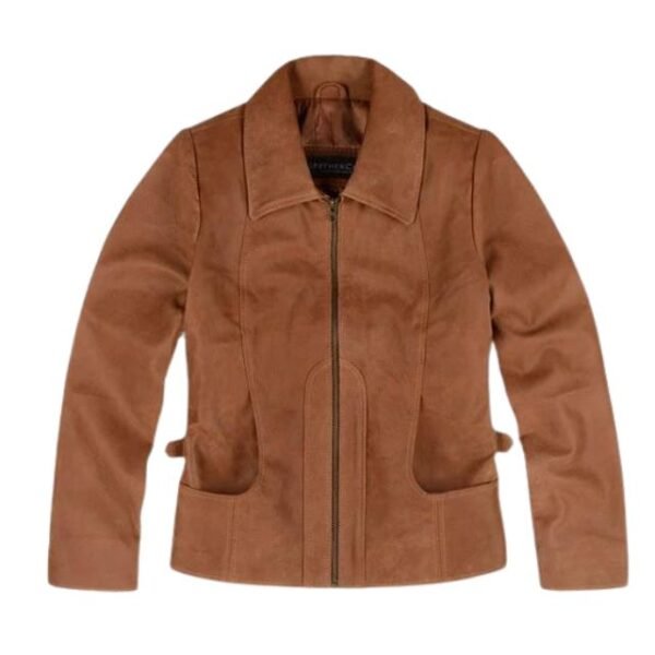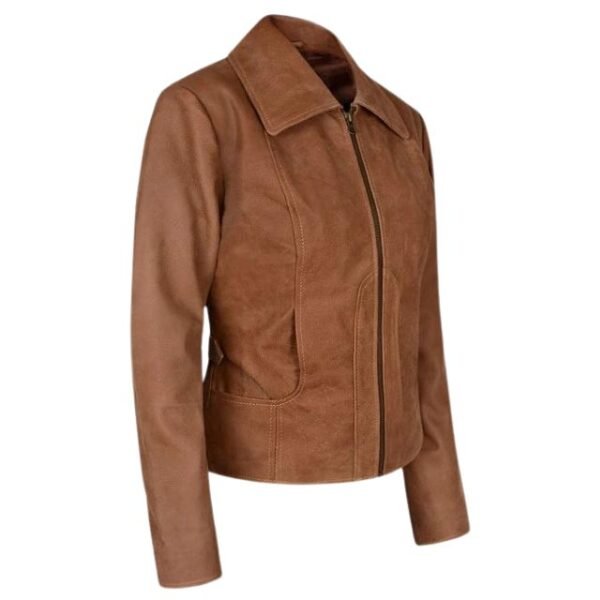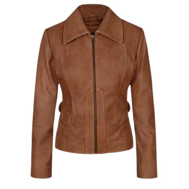 Diese Jacke ist eine Hommage an eine wahre Ikone. Ein Moment der Modegeschichte – die unverwechselbare braune Lederjacke, die Jennifer Lopez 2003 im Film *Gigli* trug. Ihr lässig-cooler, robuster und doch schicker Look begeisterte das Publikum und löste einen Trend zu Vintage-inspirierten Blouson-Lederjacken in der Damenmode aus.