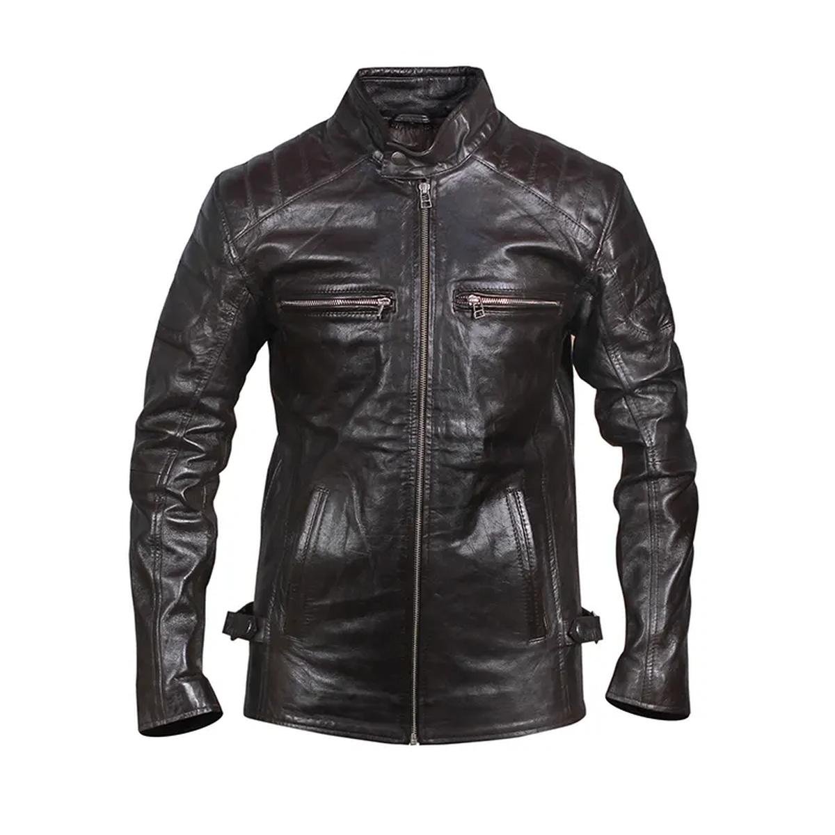 Legen Sie Ihre handgefertigte Vintage-Motorrad-Bikerjacke aus schwarzem Steppleder noch heute in Ihren Warenkorb!